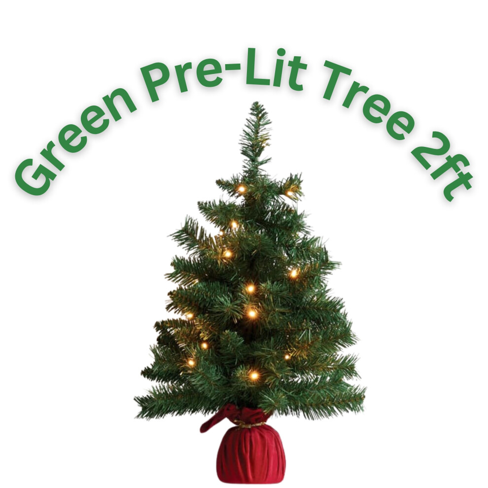 Small Pre-Lit Christmas Tree 2ft With 20 Warm White LEDs & Stable Cement Base