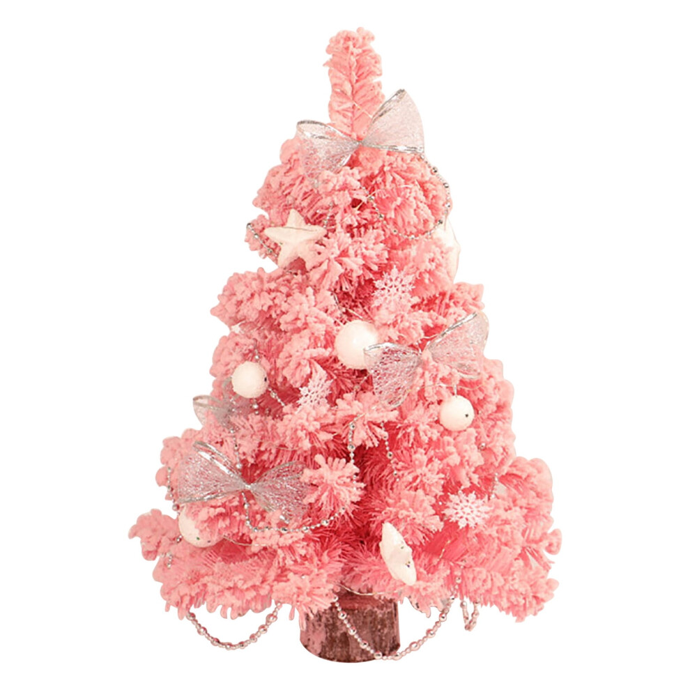 2Pcs Small Pink Prelit Christmas Tree for Desk Compact Artificial Xmas