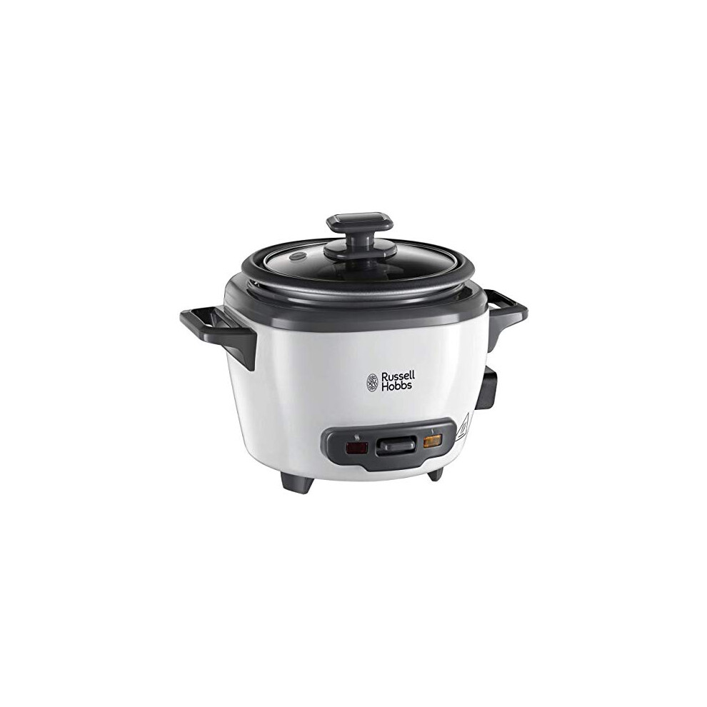 Russell Hobbs Small Rice Cooker, 3 portions of Rice (0.4 L), 600 grams at a time, Automatic Warming Function, Stainless Steel/White, Non-Stick
