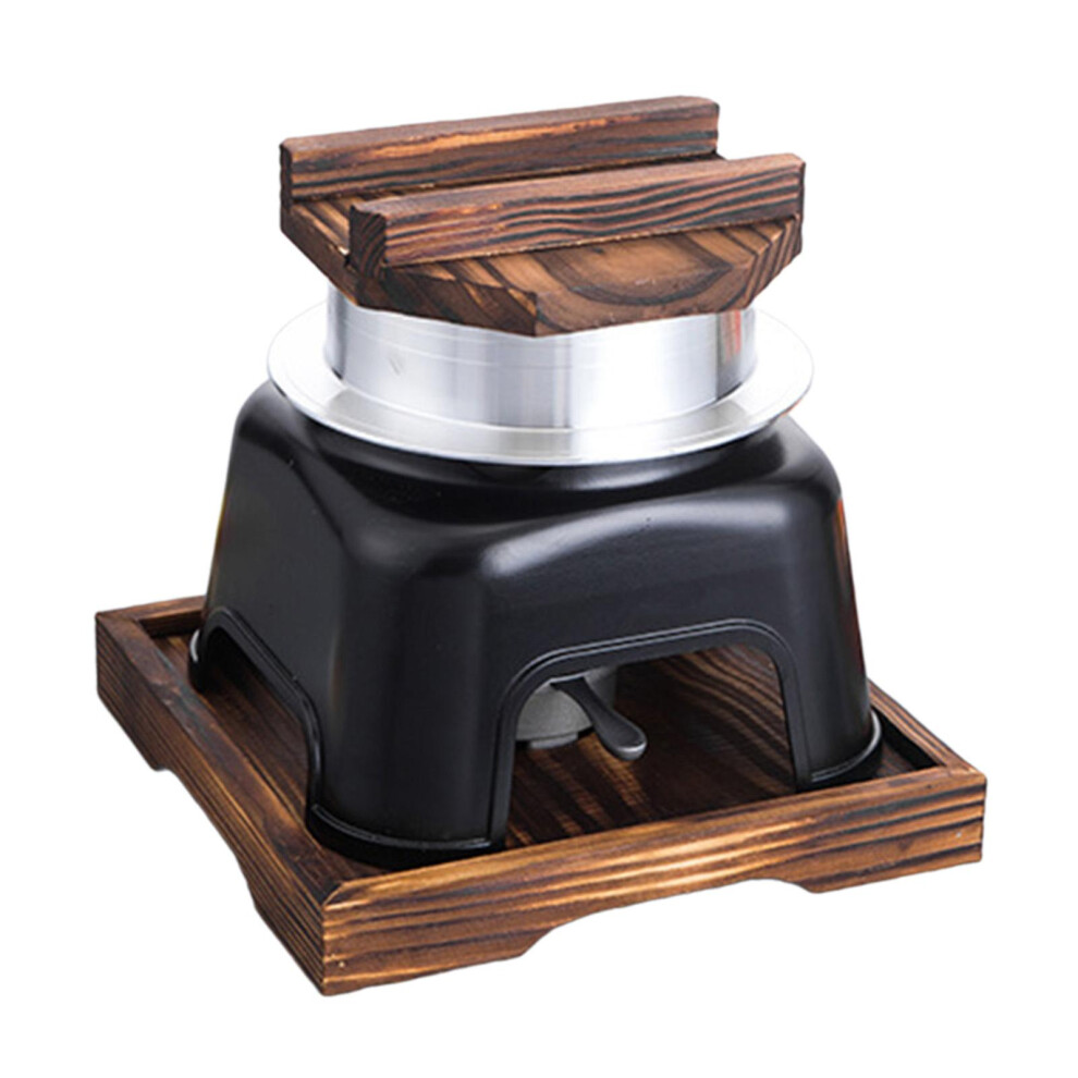 (Black, small) Japanese Rice Cooker With Pot Stand Insulated Wooden Tray Outdoor