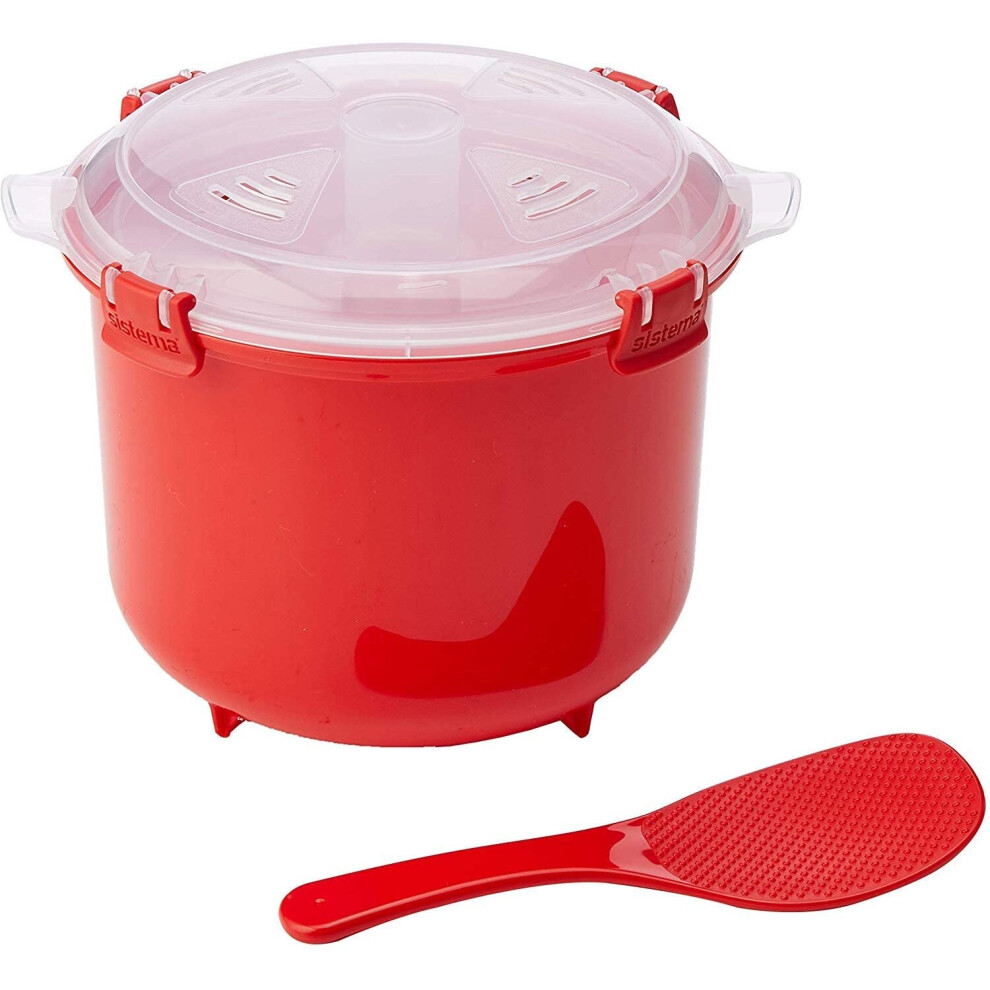 Sistema 1110ZS Microwave Rice Cooker | 2.6 L | Dishwasher Safe Small Rice Cooker | BPA-Free | Red/Clear