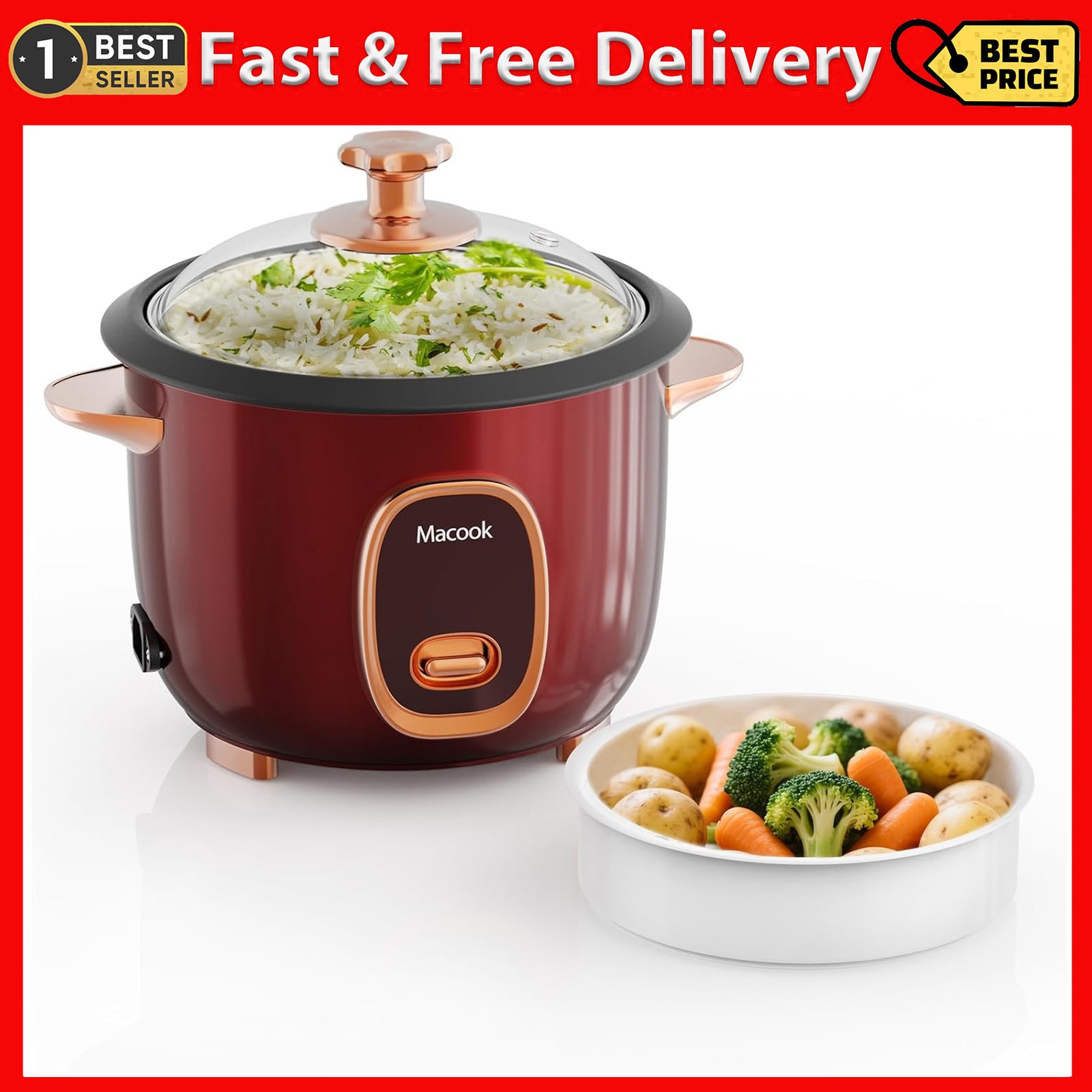 Macook Rice Cooker & Steamer (5 Cups, 1 Liter), Small Rice Cooker with Non-Stick