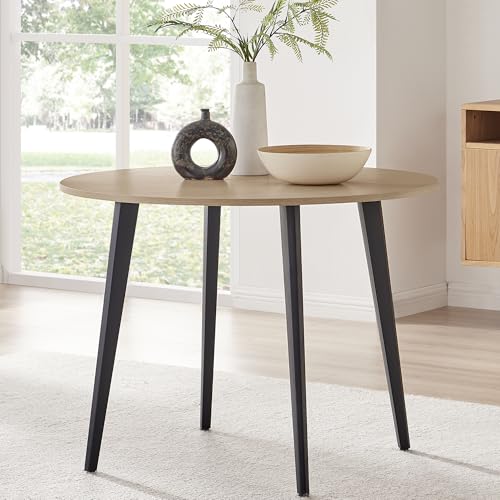 GOLDFAN Round Dining Table Small Kitchen Table Wooden Table with Black Powder Coated Legs for Dining Room Space Saving, 80cm