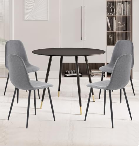 Small Round Dining Table Set with 4 Chairs, Modern Office and Kitchen Furniture for Living Room Lounge Conference