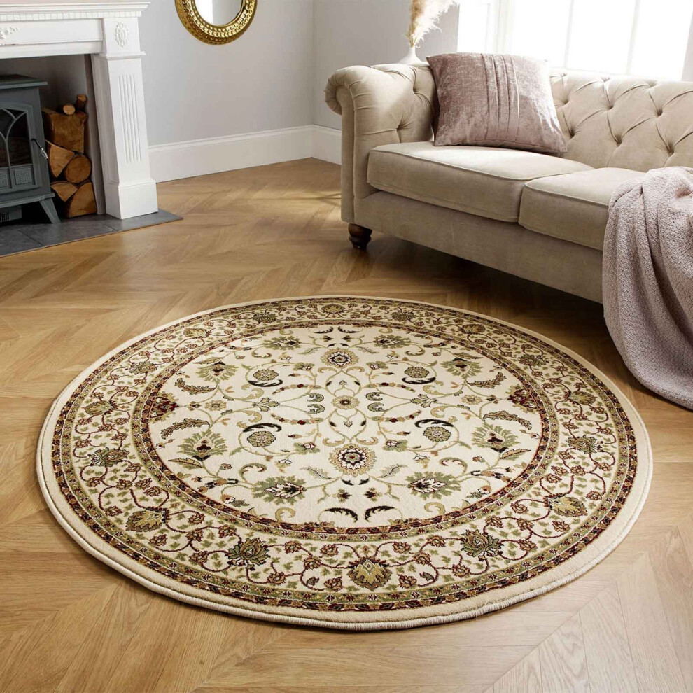 (KENDRA 137W Cream, 120x120cm : Circle) Luxury Traditional Rugs Small Extra Large Hallway Runners Round Circle Mat Rug Living Room Bedroom Moth Resist