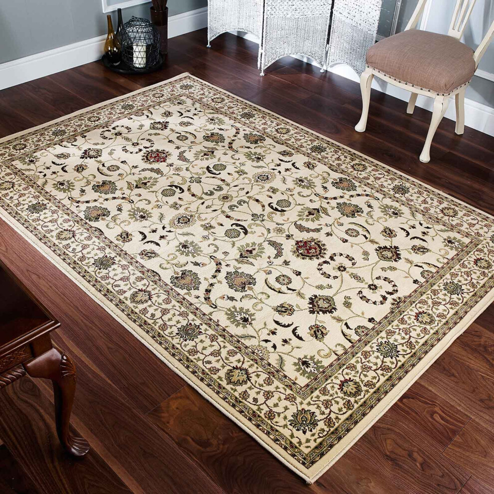 (KENDRA 137W Cream, 120 x 170 cm) Luxury Traditional Rugs Small Extra Large Hallway Runners Round Circle Mat Rug Living Room Bedroom Moth Resistant Ca