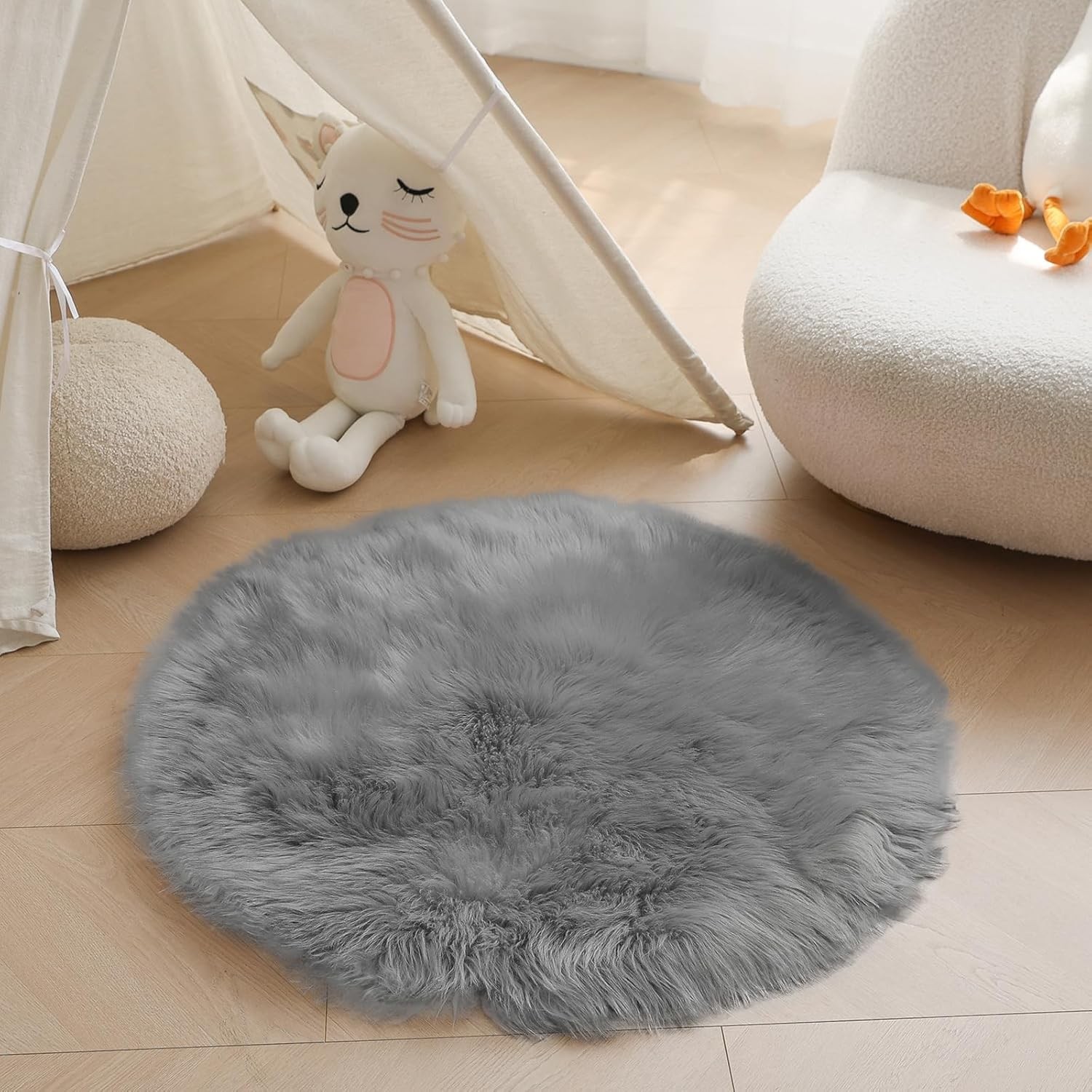Round Rugs Living Room-50cm,Small Faux Fur Rug for Kids Room,Washable Circle Gi