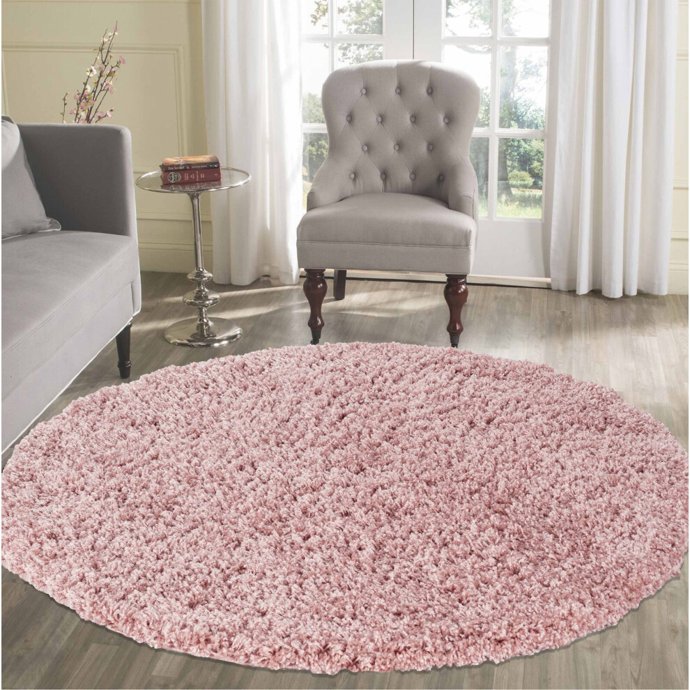 (Round 120 x 120cm, BABY PINK) Living Room Soft Shaggy Rugs 45mm Pile Height Small - Extra Large in 22 Colours