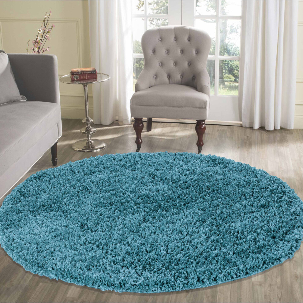 (Round 120 x 120cm, TEAL) Living Room Soft Shaggy Rugs 45mm Pile Height Small - Extra Large in 22 Colours