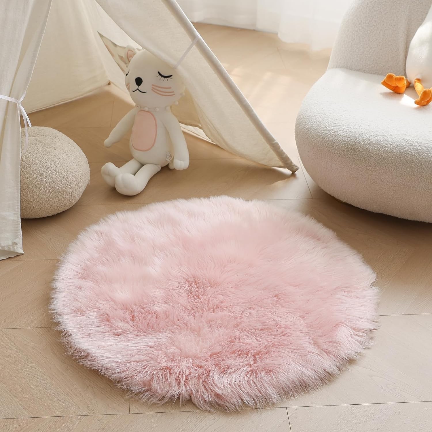 Rugs Living Room-Round 50cm,Small Faux Fur Rug for Kids Room,Washable Circle Be