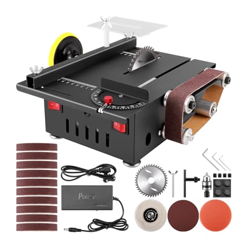 300W Mini Table Saw with Belt Sander,Small Bench Saw for Woodworking with 10 Replacement Sanding Belts, Sanding Disc & Sponge Wheel,Table Saws & Mini Sanding Disc Machine for Handmade DIY Hobby Model