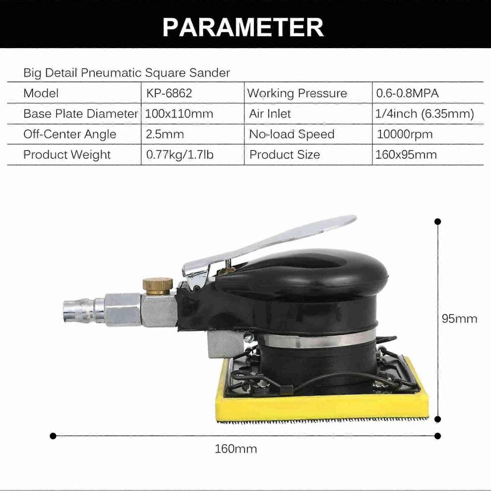 Pneumatic Sander Low Noise Small Detail Pneumatic Sander with Comfortable Rubber Handle