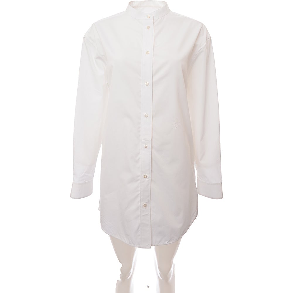 Jil Sander Womens C/O Wednesday Pure Cotton Small Stand Collar Slightly Dropped Shoulder Straight Fitted Shirt W Embroidered Js Monogram in White - Size 10 UK