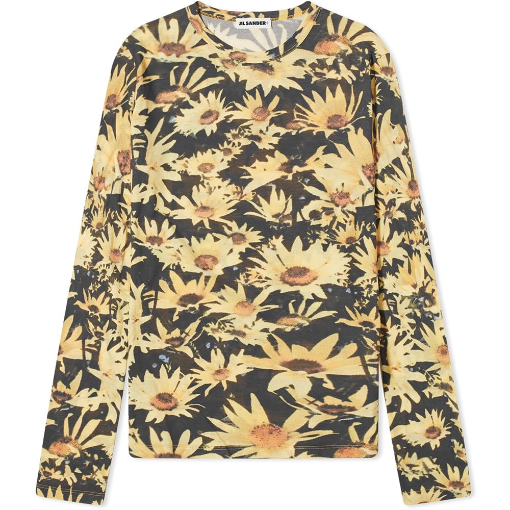 Jil Sander Womens Long Sleeve Flower Print T-Shirt - Yellow Cotton - Size X-Small