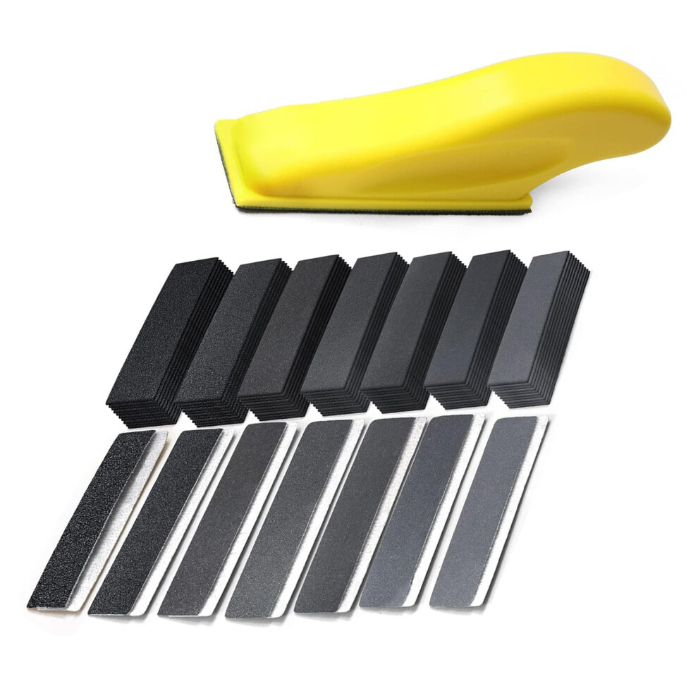 WHLLING Micro Zip Detail Sander 70PCS Sandpaper-Grit 400 600 800 1000 1500 2000 3000, 3.5”x 1”Micro Sander Tool for Small Projects Wet Dry, Hook and Loop Detail Sander for Crafts and Woodworking