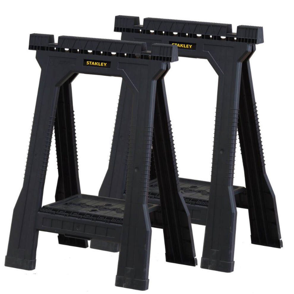 STANLEY Folding Junior Work Bench Saw Horse Twin Pack with Tray for Tools and Small Parts STST1-70355 Black