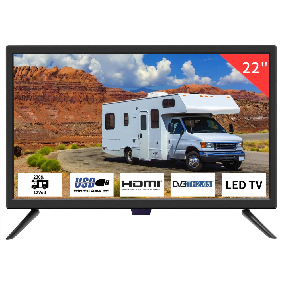 TV 22 inch IPS HD 1080P Screen,Small tv with Freeview Receiver,12 volt TV Built Digital T2 Tuner,USB,HDMI/RCA/VGA inputs,Suitable for Bedroom Caravan