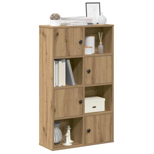 Owoxanthellate Bookcase Concrete Grey 98x30x98 cm Engineered Wood Modern 7 Cube 2 Door Small Book Shelf Storage Unit for Living Room Office and Bedroom