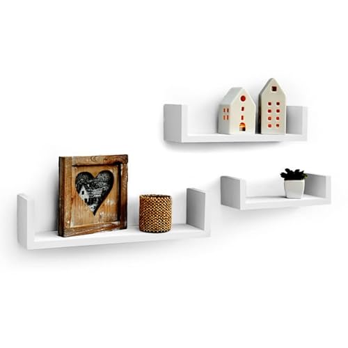rightclick Floating Shelves for Wall – Set of 3 Wooden Shelves, Rustic Wall Shelf & Kitchen Shelf, Small Bookcase & Storage Unit, Wall Mounted Book Racks (White)