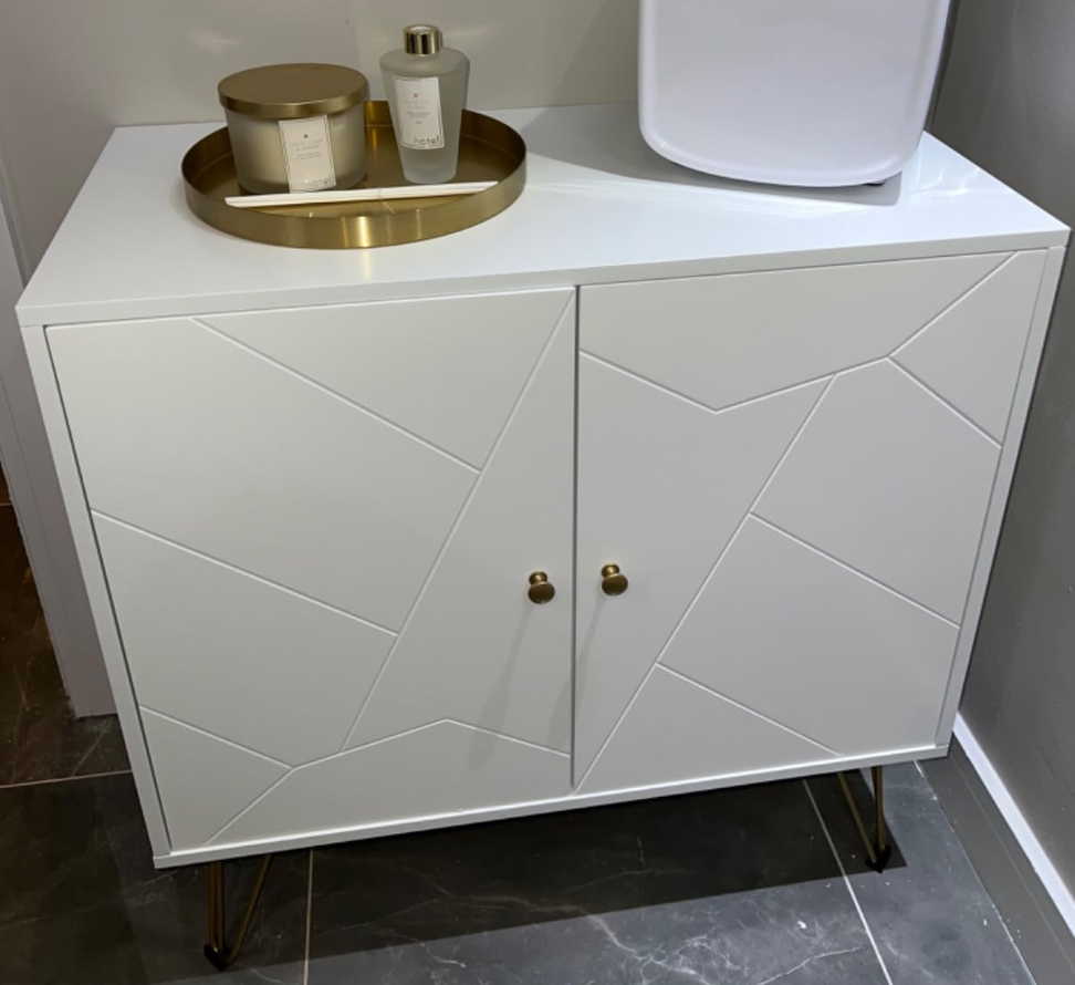 Small Side Cabinet Modern White Cupboard Hallway Storage Shelf Sideboard Unit