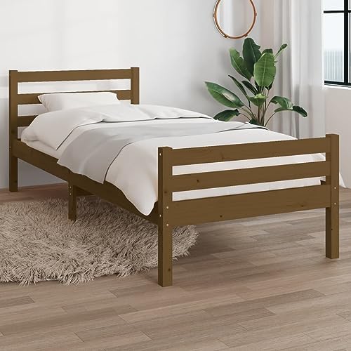 AJJHUUKI Bed Frame without Mattress Brown Solid Wood 75x190 cm Small Single-Furniture,Beds & Accessories,Beds & Bed Frames