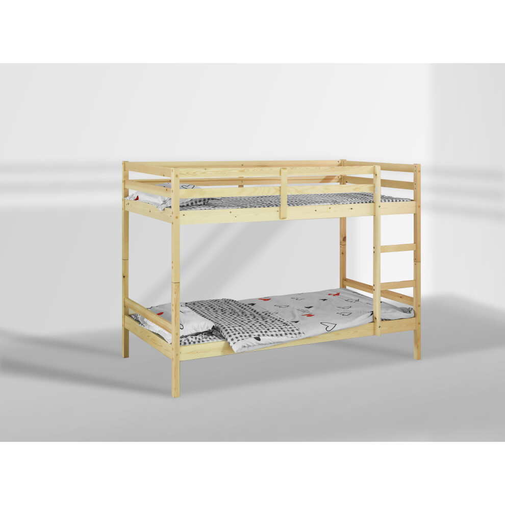 KATERYY Small Single Bunk Bed Frame for Kids, 75x190 cm Solid Pine Wood, Space-Saving Design with Safety Guardrails, Natural Finish Bedroom Furniture