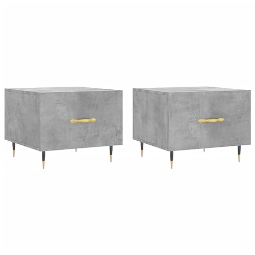 Natulvd Set of 2 Coffee Tables, Small Sofa/Bed Side End Tables with Drawer, 50x50x40 cm, Minimalist & Modern Style, Golden Legs (Grey Oak)