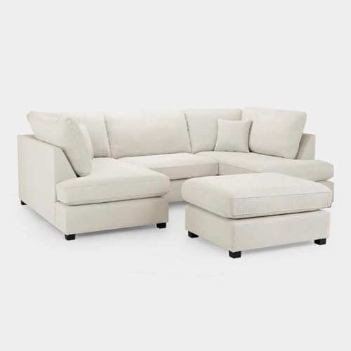 Cinema U Shape Sofa - Mini 4pc High Back Couches - Modular 5 Seater U Shaped Corner Suite - Small Five Seated Sectional Sofas - U Shape with Footstool Sofabed for Living Room (Cream)