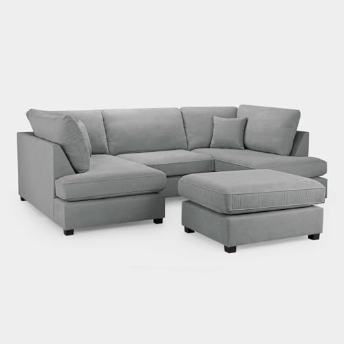 Cinema U Shape Sofa - Mini 4pc High Back Couches - Modular 5 Seater U Shaped Corner Suite - Small Five Seated Sectional Sofas - U Shape with Footstool Sofabed for Living Room (Light Grey)