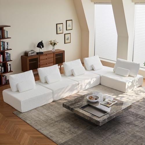 Mavdecll Modular Sectional Cloud Sofa, Comfy Modern Chenille Sofa, Sleeper Sofabed with Backrest and Lumbar Pillow, DIY Combination, for Small Spaces, Apartment, Dorms, Studios