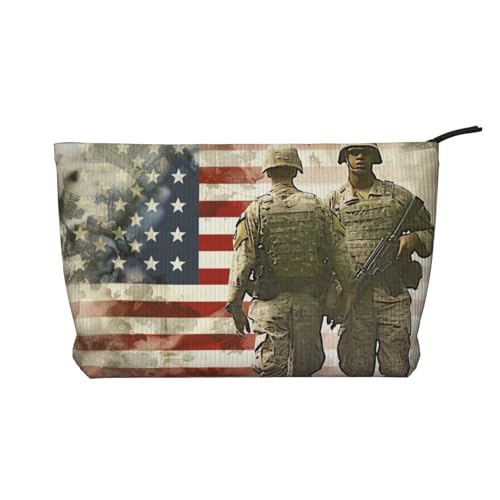 Mexpekil US Flag Soldiers Standing Makeup Bag Waterproof Cosmetics Storage Organiser Bags Small Makeup Case Pouch Portable Travel Accessories Gifts for Women Men Girls