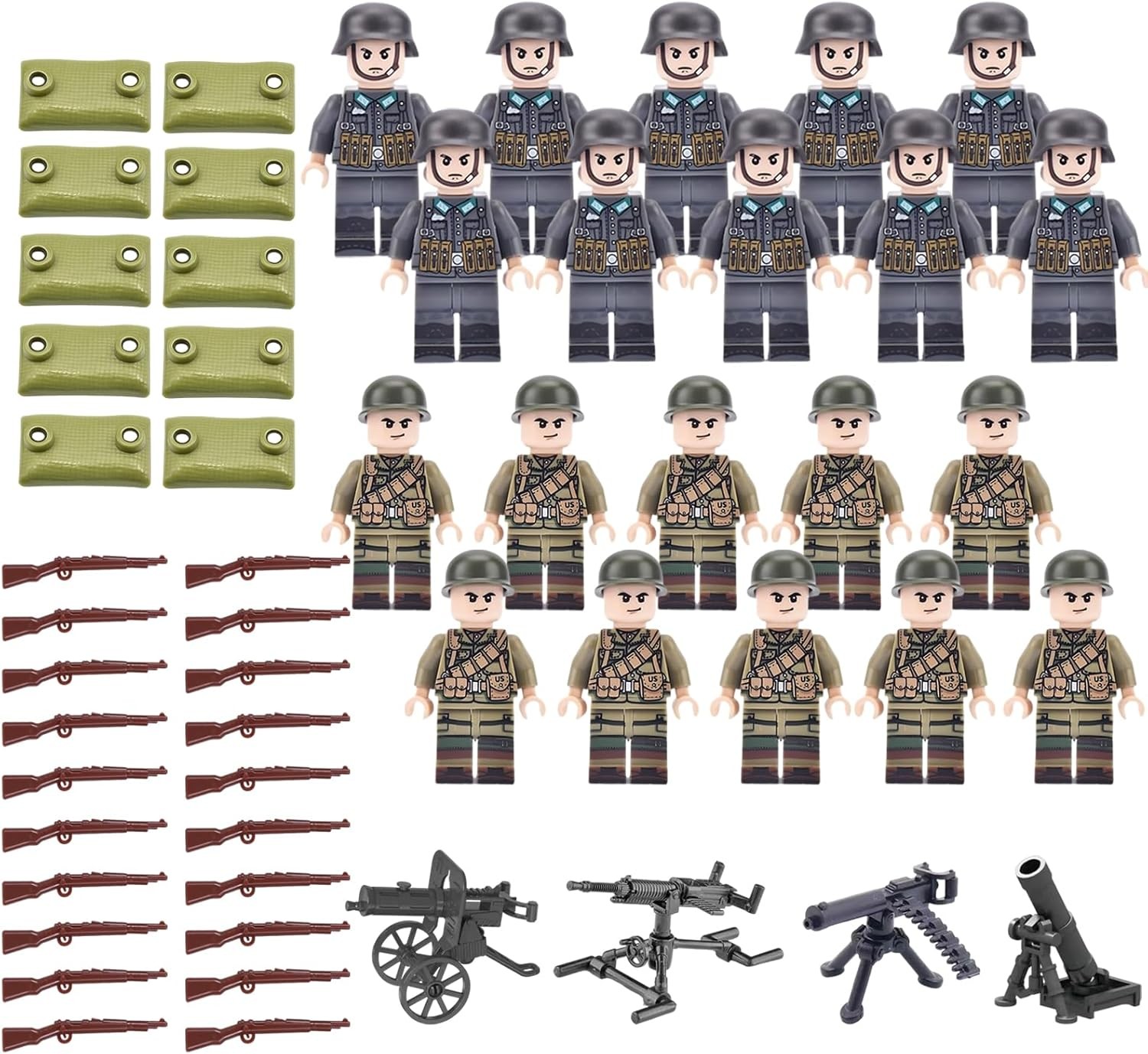 MINHADISI 100 Piece Military Mini Figures Soldiers Toys Army Base Playset with Portable Storage Bucket Army Men Figures Toy Small Soldiers Figures Gifts for Kids
