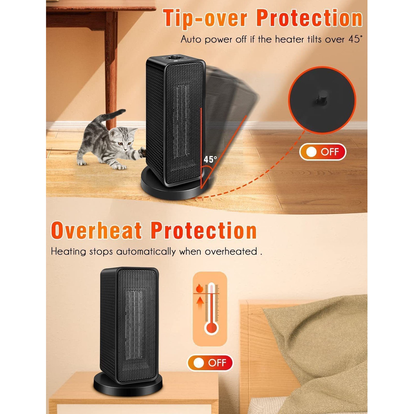 1200W Small Space Heater Oscillating Vertical Fast Heating Overheat And Tip Over