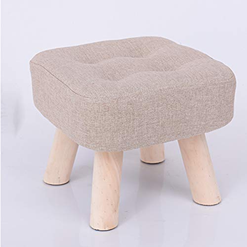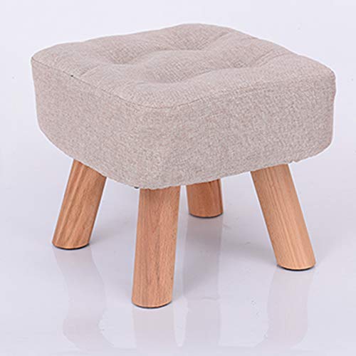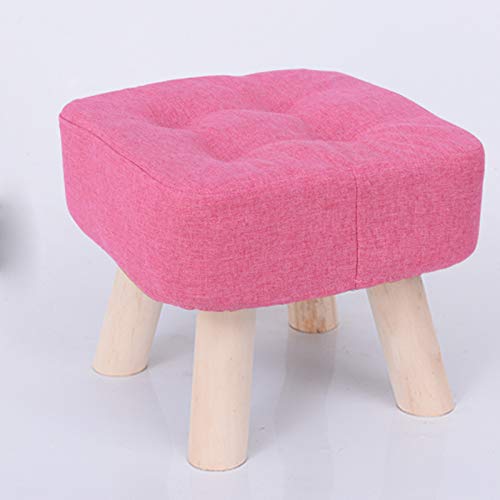 GGoty Wooden Footstool Ottoman Stool,Square Linen Chair Stool Small with 4 Legs Padded for Shoes Wearing Stool Living Room Bedroom (30 * 30 * 26cm,Red)