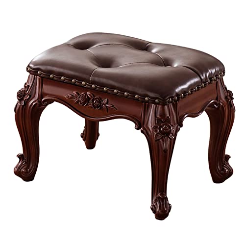 ZWLI Faux Leather Ottoman Foot Rest Upholstered Elastic Sponge Cushion Small Stool,Hand Carving Wood Grain Footstool for Living Room, Bedroom