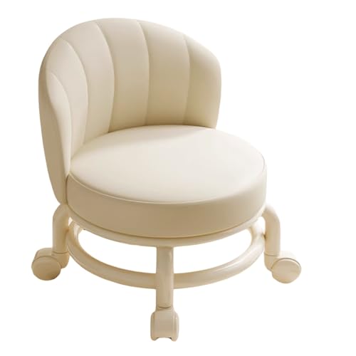 Wefrib Rolling Pulley Stool with backrest,Rotating Stool Pulley Stools Chair,Swivel Chair, Small Roller Stools with Wheels,Comfortable Strong Elegant Suitable for Home,Office Or Garage (8027-white)
