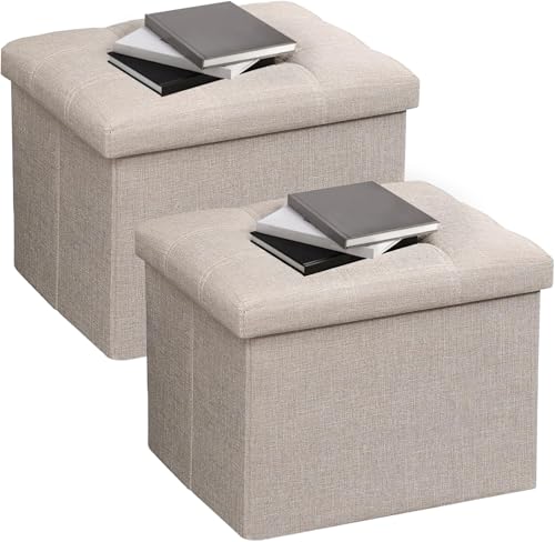 AmasSmile 2Pack Beige Ottoman with Storage,Foot & Leg Rest Stools Small Cute Stool Short Bench Folding Ottomans Square Footstools for Shoe Living Room Under Desk Outdoor RV Camper Each Space Storage