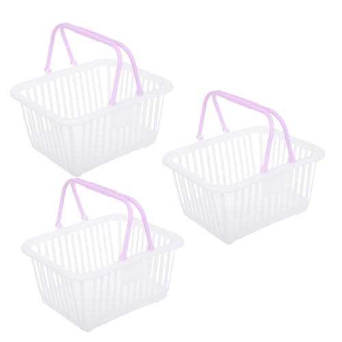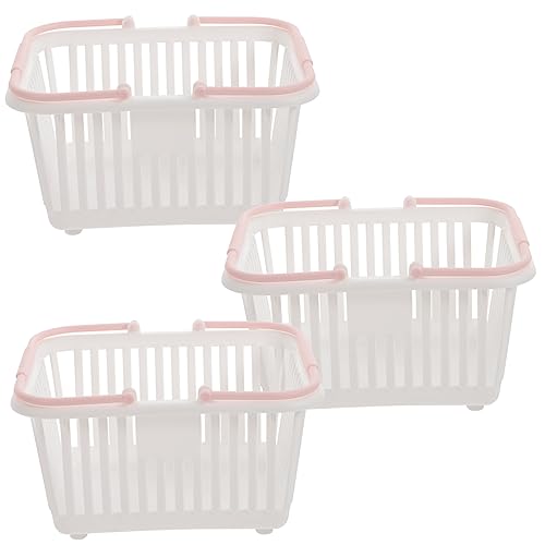 DONFAMDS 3pcs Plastic Baskets Handles Small Plastic Baskets Storage Bins Classroom Grocery Handles Portable for Home Beach