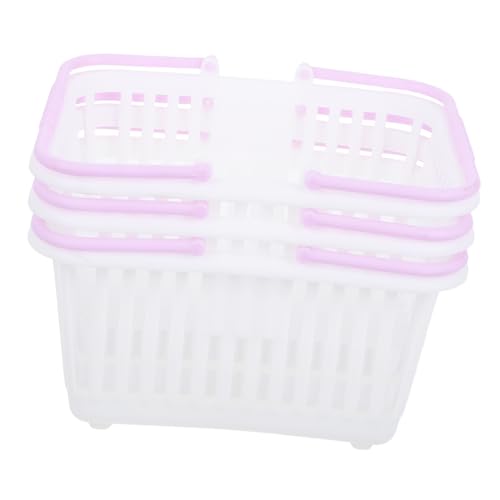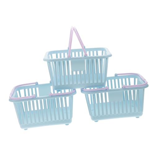 STOBAZA 3pcs Small Plastic Storage Baskets Handles for Toy Buckets Boys and Girls Classroom As Grocery Basket Beach Compact Desktop Organizer