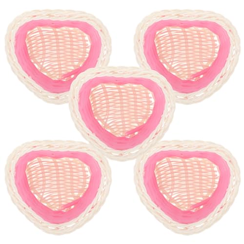 ifundom 5pcs Pink Heart-shaped Mini Woven Floral Baskets Set, Small Plastic Rattan Storage Baskets for Dollhouse Decor, Party Favors, and Miniature Photo Props