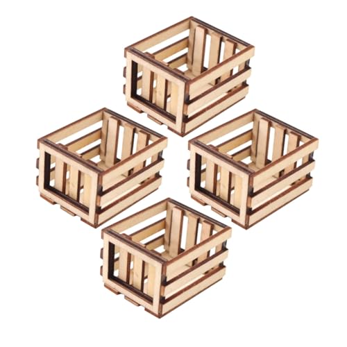 Gogogmee 4pcs Mini Wooden Crates Dollhouse Fruit Basket Small Storage Baskets Lightweight Realistic Design Miniature Doll House Accessories for Organization and Educational Play