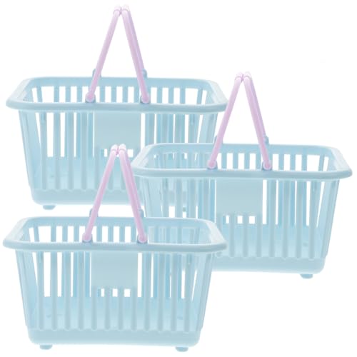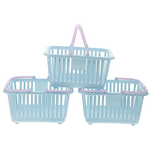 VALICLUD 3Pcs Small Plastic Storage Baskets with Handles Portable Beach Tote and Shower Organizer Versatile Grocery and Garden Harvest Baskets for Indoor and Outdoor Use Sky