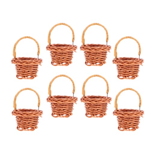 HEMOTON 8pcs Mini Woven Decorative Handheld Baskets Coffee Color Small Storage Baskets with Handles for Dollhouse Accessories Flower Display and Organization