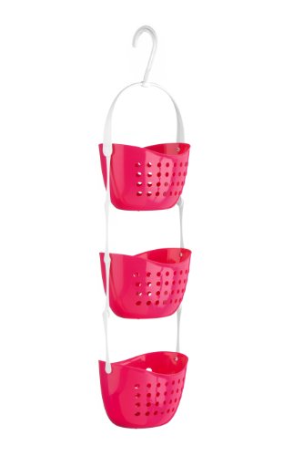 Premier Housewares 1601487 3-Tier Hot Pink Hanging Organiser Small Storage Baskets Shower Caddy for Bathroom as Shelf 14 cm x 21 cm x 16.5 cm