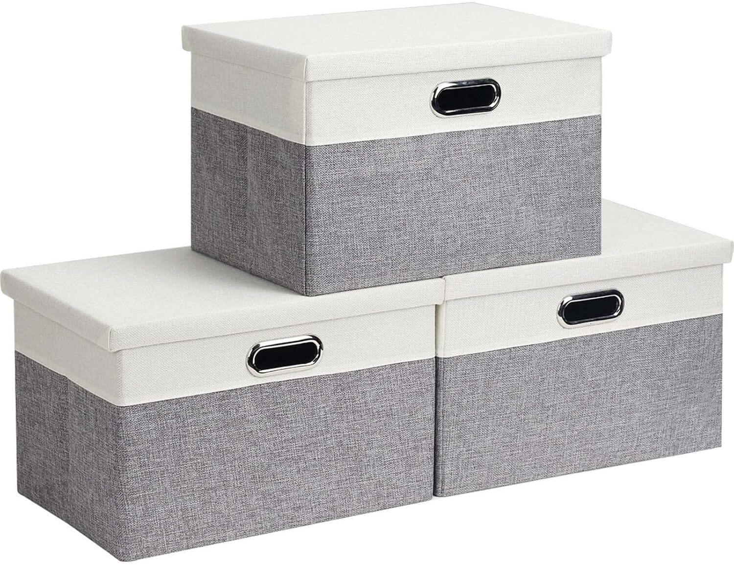 Febzoce Storage Boxes with Lids, Small Storage Baskets for Shelves Foldable Fab