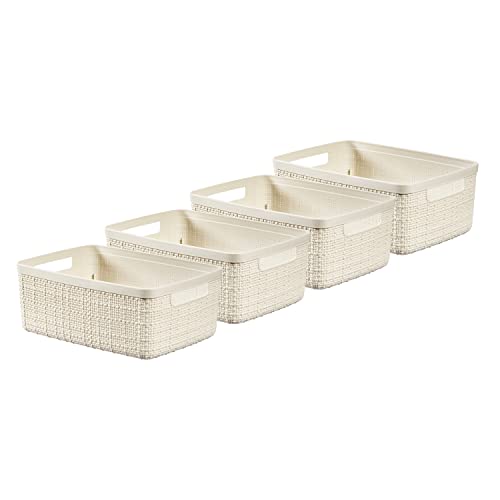 Curver Jute Woven Effect Set of 4 100% Recycled Rectangular Small Storage Baskets 5 Litres – Off White