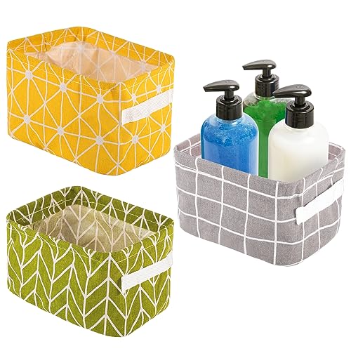 3 Pieces Small Fabric Storage Baskets, Waterproof Bathroom Storage Baskets Boxes