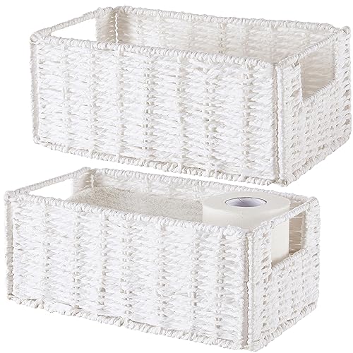 Vagusicc Wicker Storage Basket, Set of 2 Hand-Woven Paper Rope Wicker Basket, Small Storage Baskets for Organizing Toilet Paper Basket, Foldable Large Cube Storage Organizer Bins for Shelves (White)