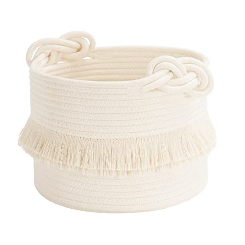 CherryNow Small Woven Storage Baskets Cotton Rope Decorative Hamper for Diaper, Blankets, Magazine and Keys, Cute Tassel Nursery Decor - Home Storage Container – 9.5'' x 7'' Off-white