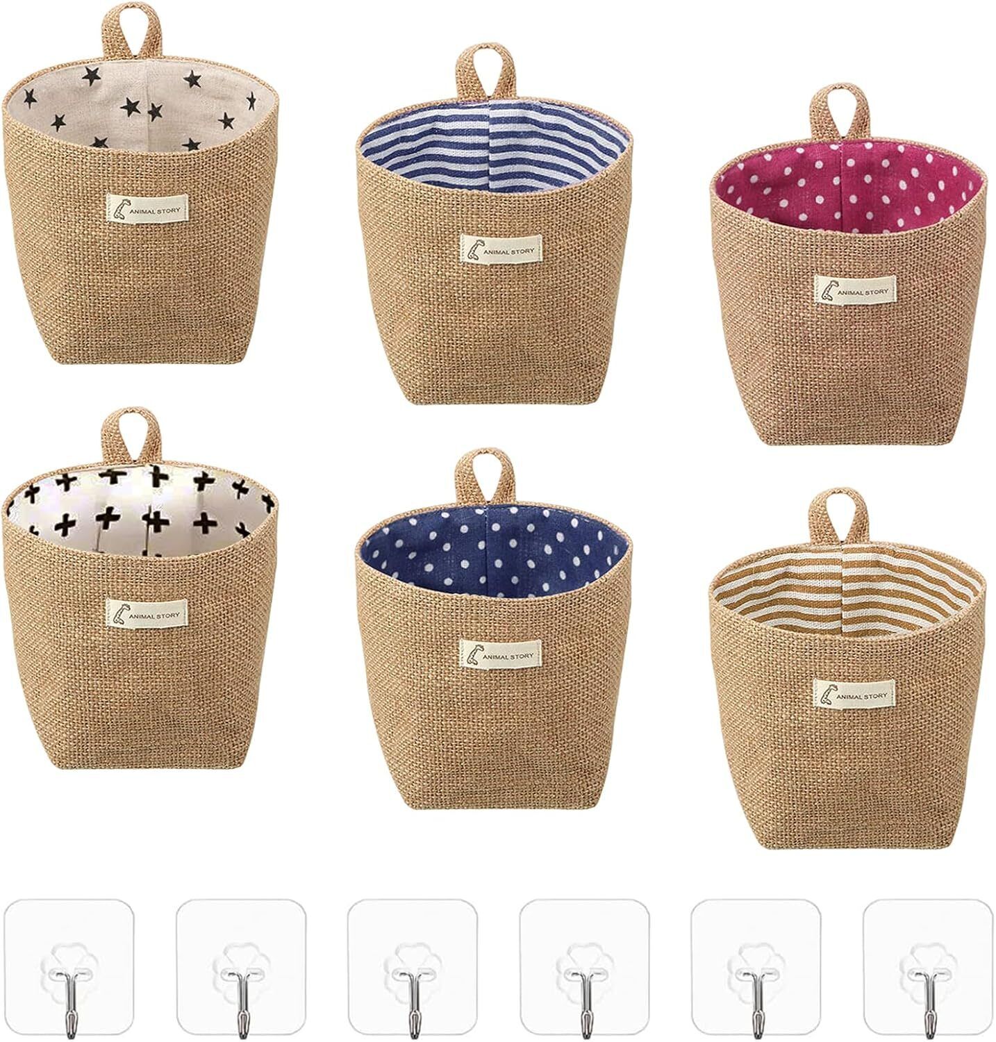 Omevett 6 Pcs Cotton Linen Storage Organiser Bag Small Hanging Storage Baskets